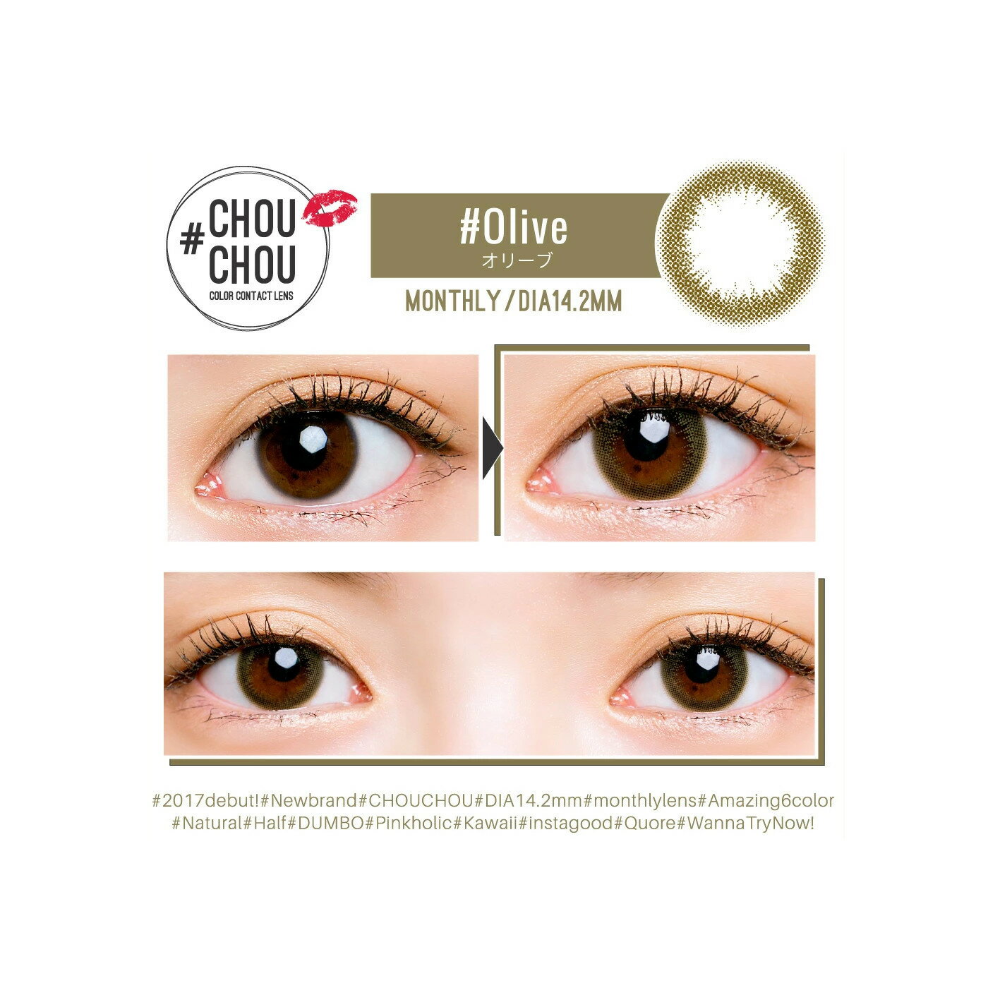 【あす楽】【ネコポス】カラコン カラーコンタクト #CHOUCHOU #チュチュ オリーブ 1ヶ月 1箱1枚 度なし 度あり